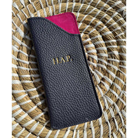 Fed up with bulky glasses cases which do not fit inside an evening bag or a jacket? Look no further! Keep your glasses safe and secure in this sleek and tactile two-tone glasses case expertly handcrafted in England from the finest full grain Italian cowhide leather and lined with softest goat suede.