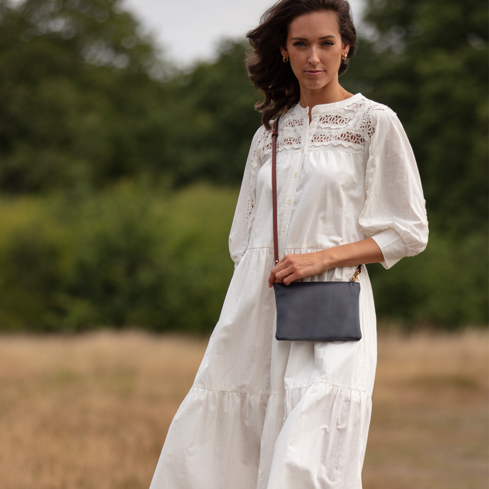 Handcrafted from supple, textured Italian full-grain leather in a rich, deep navy hue, this luxury crossbody bag offers a sophisticated alternative to classic black. Equally versatile but with a contemporary edge, this compact leather crossbody bag is designed to endure beyond seasons and trends.
