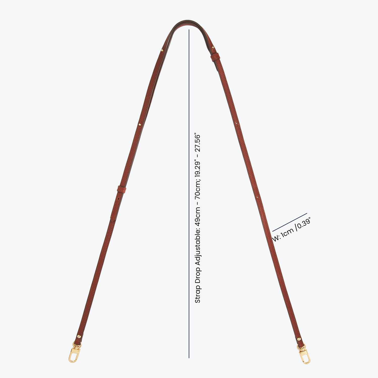 • Leather Strap Drop: Adjustable between 49 – 70cm; Width 1cm.