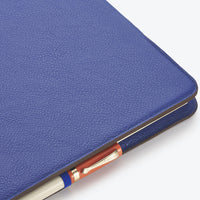 We love this leather, its beautiful texture and stylish royal blue colour. It is durable and luxuriously soft to touch. The brand logo is embossed on the back. The leather covers are available in seven colours.