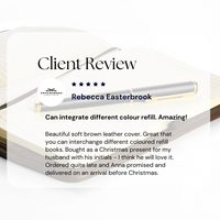 The journals leather cover is handmade-to-order in Kent, England, in the finest Italian cowhide leather.