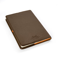 We love this leather, its beautiful texture and stylish brown colour. It is durable and luxuriously soft to touch. The brand logo is embossed on the back. The leather covers are available in seventeen colours.
