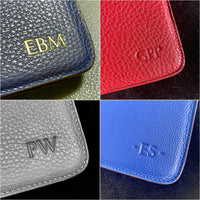 Letters are 8mm high (all capitals) and will be embossed in gold or blind (no colour) at the front right bottom corner. The maximum number of letters available, including spaces, numbers and special characters like dash, full stop and back slash, is eight.