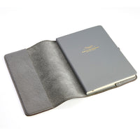 This refillable grey leather bound notepad comes in A5 size and is a great accessory for anyone who loves making notes in style. It is perfect for work or travelling and is an ideal gift for any occasion.