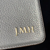 Letters are 8mm high (all capitals) and will be embossed in gold or blind (no colour) at the front right bottom corner. The maximum number of letters available, including spaces, numbers and special characters like dash, full stop and back slash, is eight.