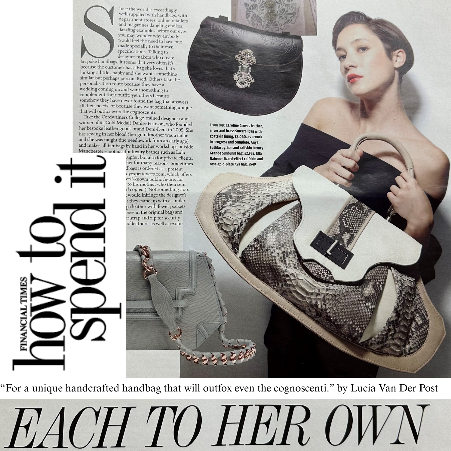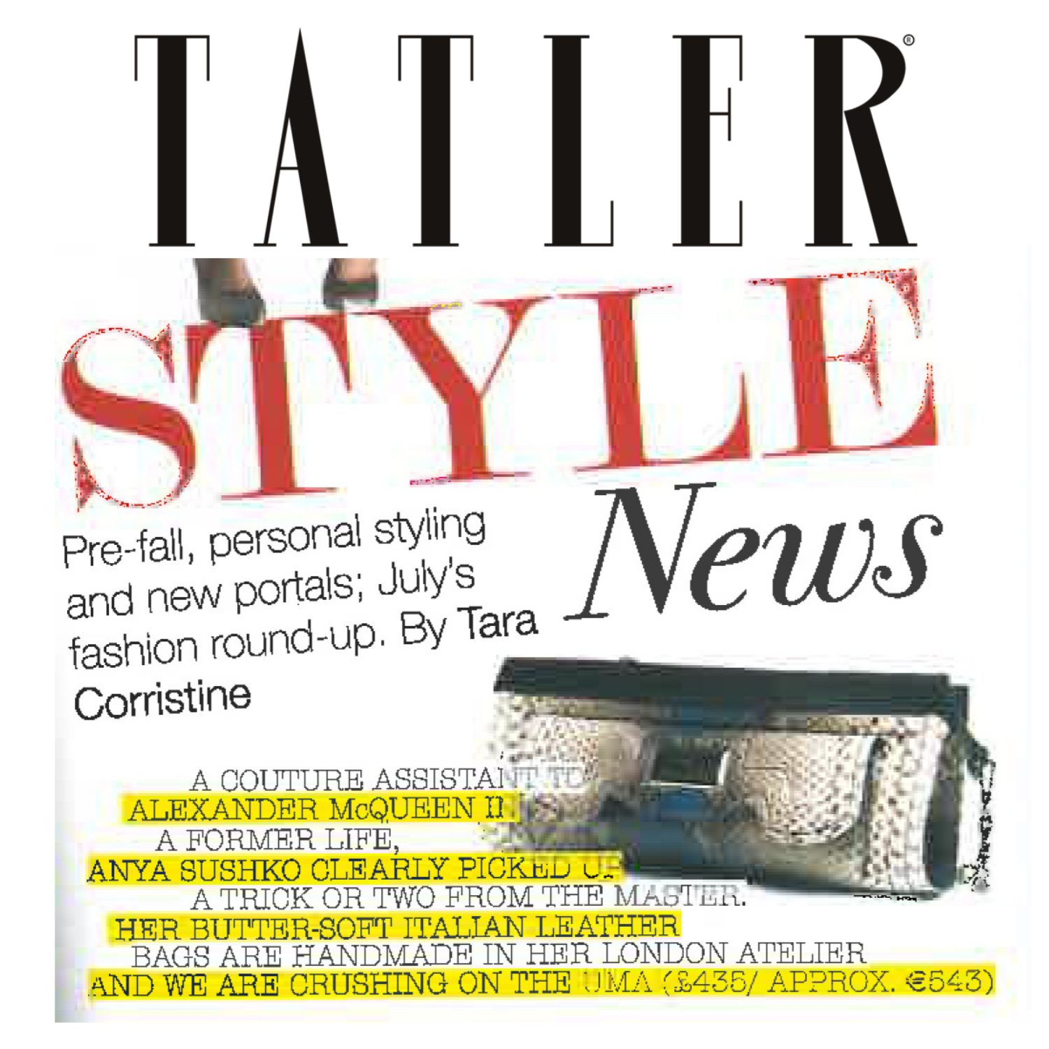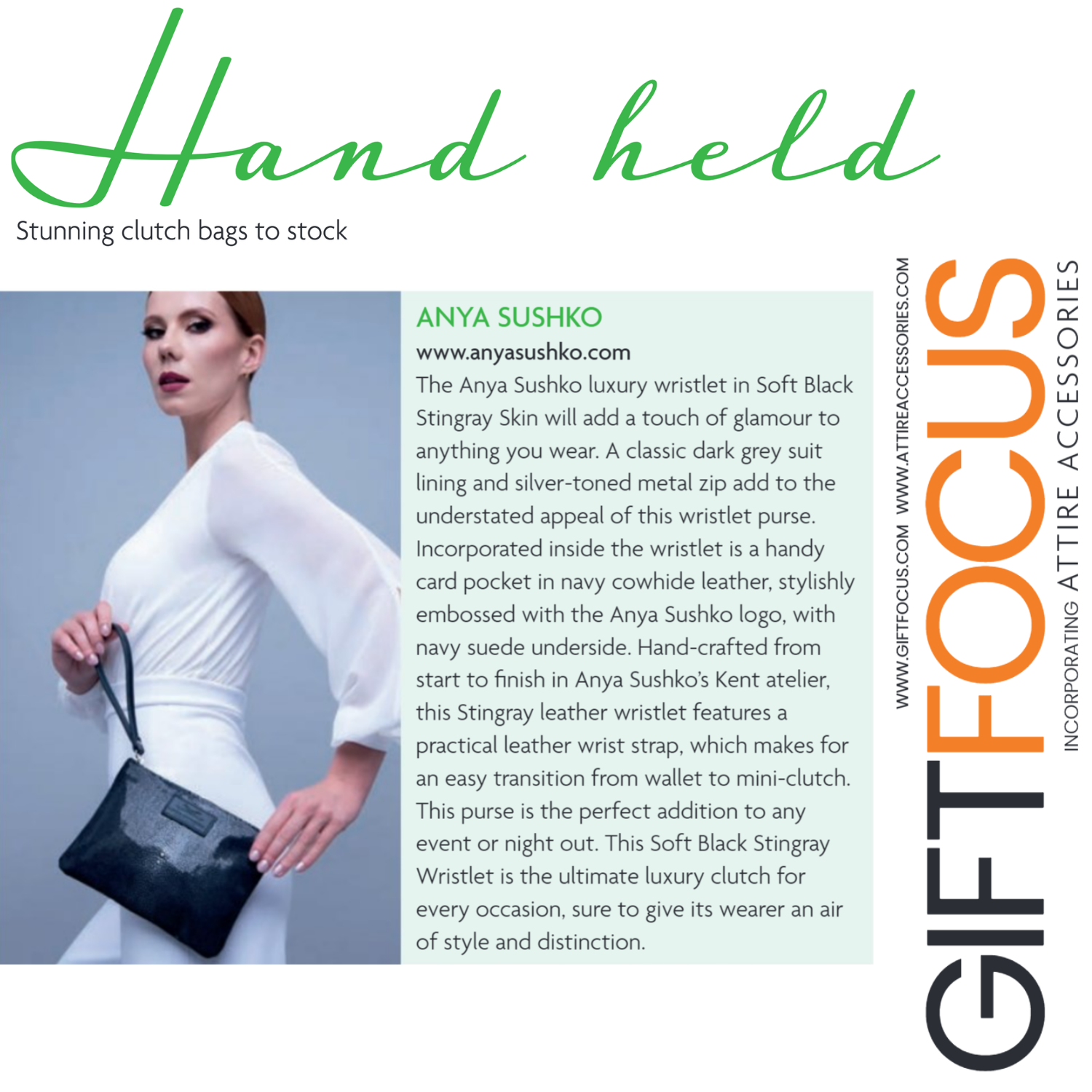 Anya Sushko Handbags England is luxury handbag brand founded in 2008 by bespoke leather accessories specialist, Central St Martin’s graduate and former Alexander McQueen couture assistant, Anya Sushko. Quality and craftsmanship are the hallmarks of the brand, and Anya is passionate about creating unique statement handbags which are beautiful but also practical and a pleasure to wear and touch.