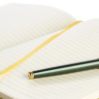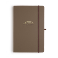 The brown hardback refill notepad comes with matching elastic pen holder and ribbon bookmark and an additional back pocket to keep all your business cards and notes in order. Our brand logo is embossed in gold at the front. Each has 80 sheets (160 sides) of lined paper and is 80g in weight.