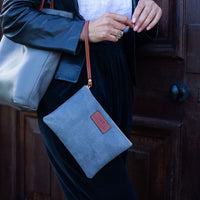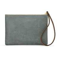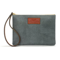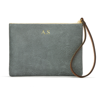 Hand-crafted from start to finish in Anya Sushko’s Kent atelier, this printed grey wristlet features a sturdy leather strap which makes for an easy transition from wallet to mini-clutch.