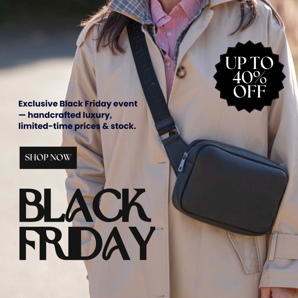 The most anticipated moment of the year is almost here. We’re currently preparing something truly special — our Black Friday Offer, crafted to celebrate timeless design and the art of giving. From our signature totes and crossbody bags to refined leather notebooks and small accessories, this exclusive event will unveil unmissable offers across our handcrafted collection — all made in England from the finest Italian leather.