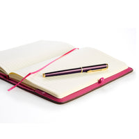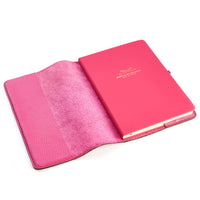 This refillable pink leather bound notepad comes in A5 size and is a great accessory for anyone who loves making notes in style. It is perfect for work or travelling and is an ideal gift for any occasion.