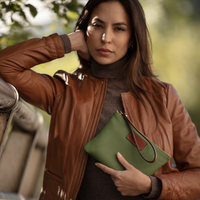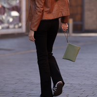 Hand-crafted from start to finish in Anya Sushko’s Kent atelier, this green wristlet features a sturdy leather strap which makes for an easy transition from wallet to mini-clutch.