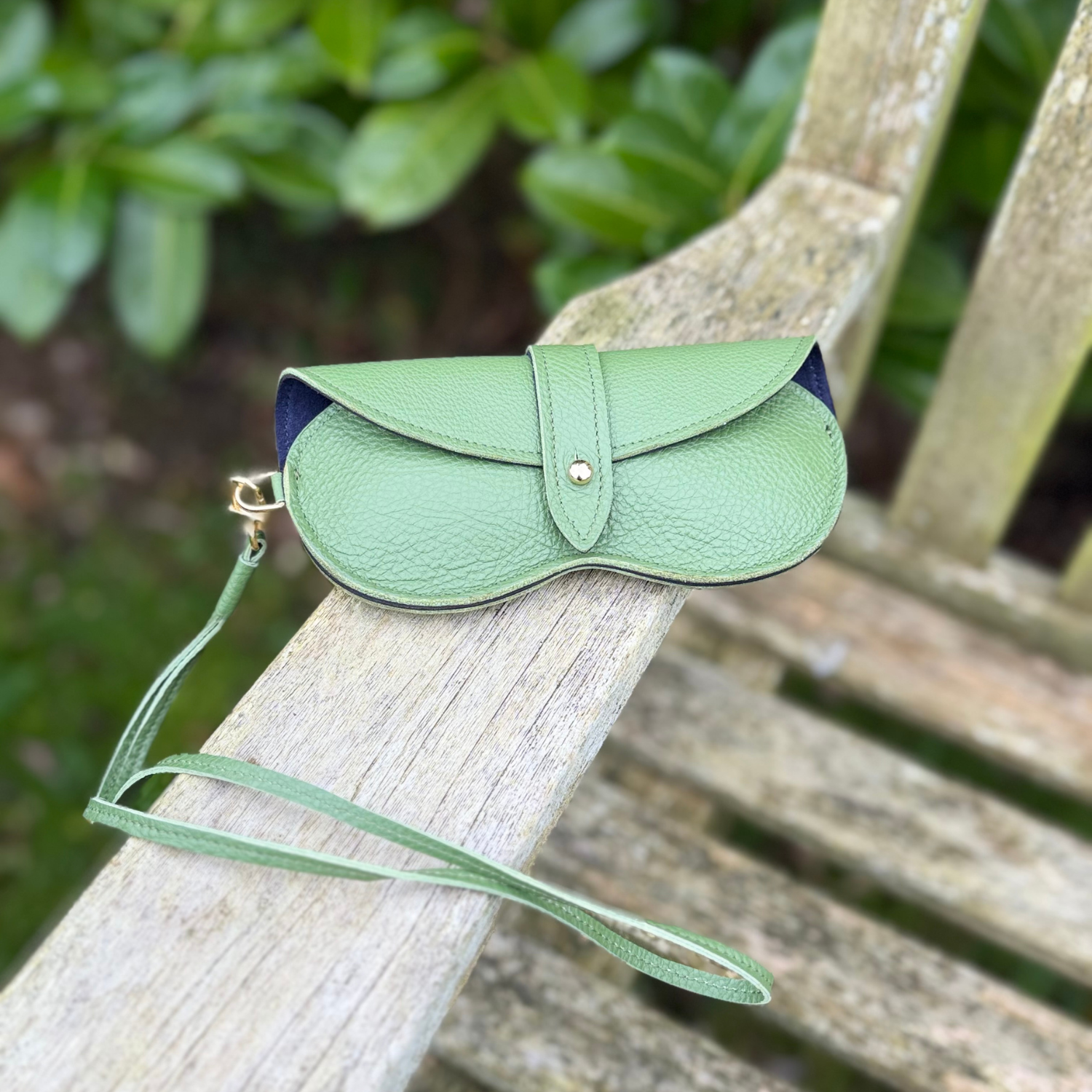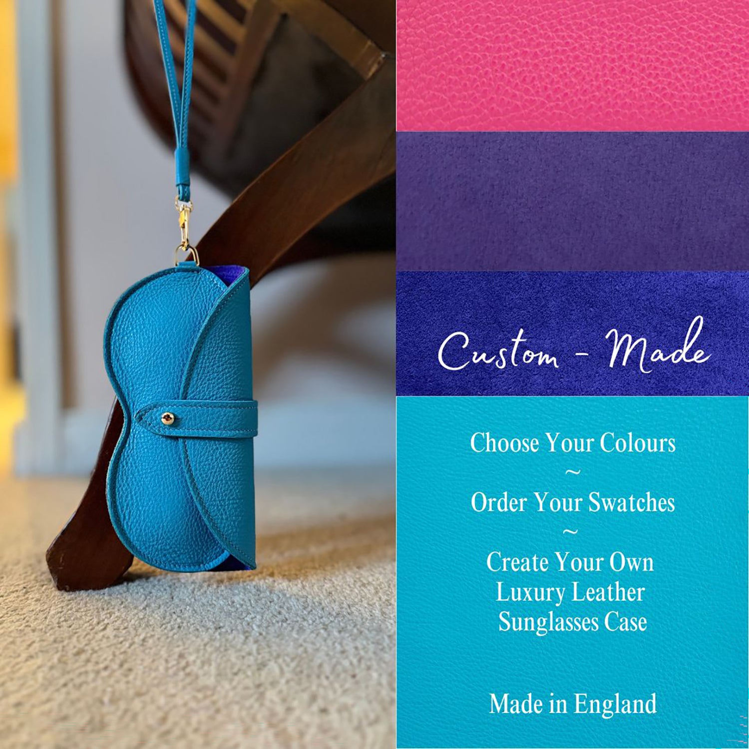 Handmade-to-order in your selected colours, using luxuriously soft full-grain Italian leather & goat or pig suede. Designed to protect your frames & slips easily inside your bag. Finished with your choice of chain or strap, it keeps your sunglasses secure & always within reach. The soft suede interior cushions and gently cleans the lenses.