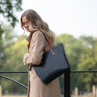 Sometimes the simplest designs are the best.  Our leather tote bag, UK-designed and made, is a must have fashion accessory, as well as a daily necessity.  This leather tote bag has proven to be an enduring design favourite over the years, and that's not set to change any time soon.