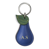 Letters are 8mm high (all capitals) and will be embossed in gold or blind (no colour) in the middle of the pear key ring. Max 3 characters including letters, numbers, spaces and special characters like: dash (-), full stop (.), back slash (\),